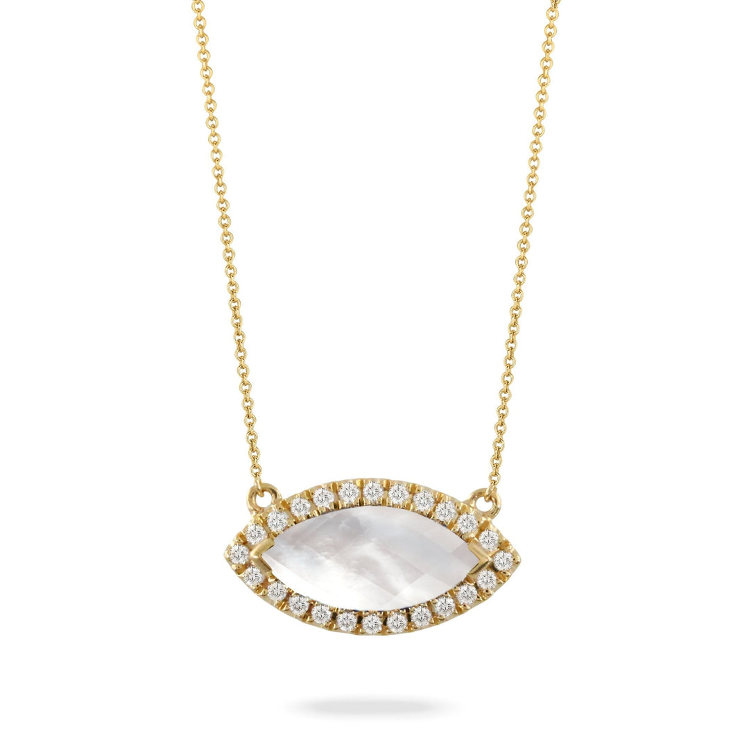 Doves by Doron Paloma 18k yellow gold necklace with clear quartz pendant featuring diamond detailing.