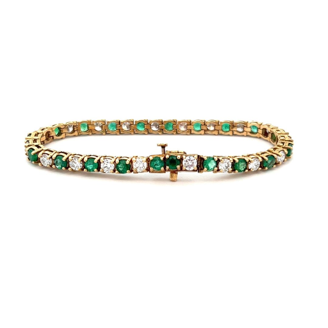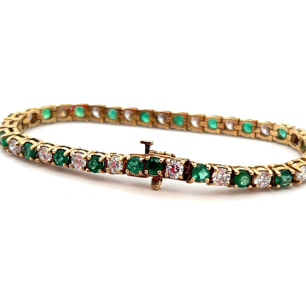 14k Yellow Gold Diamond and Emerald Tennis Bracelet