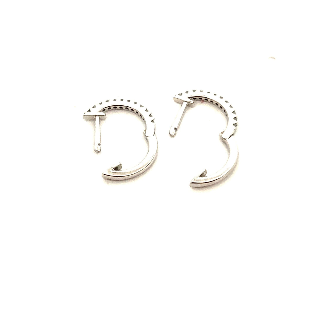 14k white gold earrings in mini hoop design with diamond detailing (TCW .12).