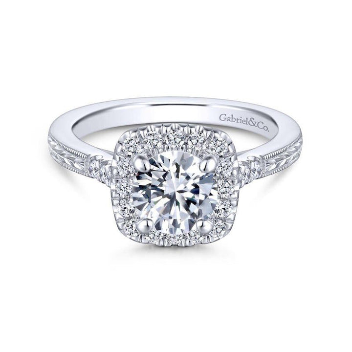 Gabriel & Co. 14k White Gold Victorian Halo Engagement Ring - Tivoli Jewelers