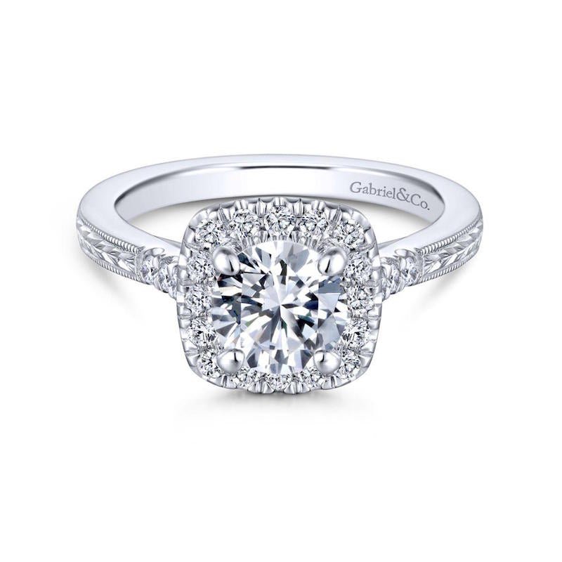 Gabriel & Co. 14k White Gold Victorian Halo Engagement Ring