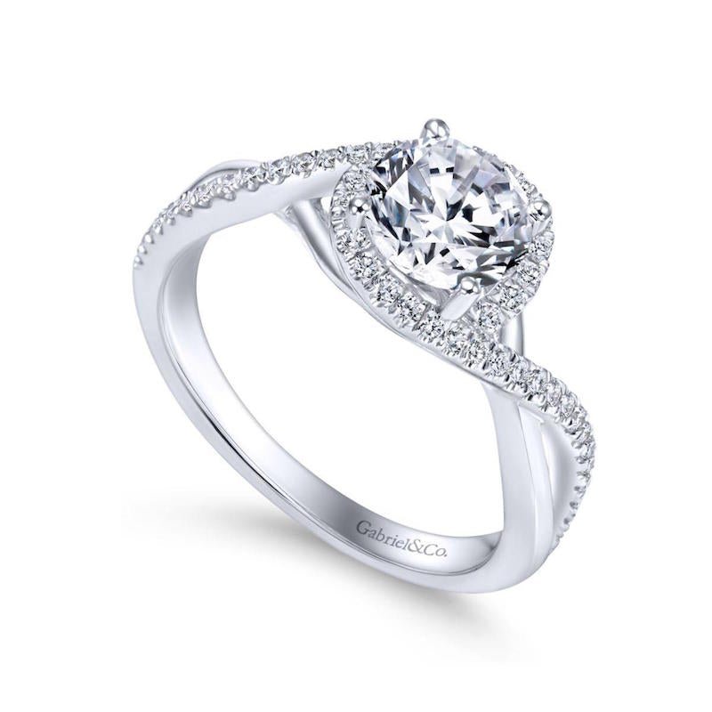 14k White Gold Twisted Engagement Ring. SETTING ONLY; center stone not included