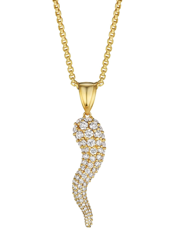The Italian horn, also known as the corno, cornetto, or cornicello, is a charm that is worn for good luck and protection from harm. It is shaped like a chili pepper and sometimes red in color. The Italian horn is believed to protect the wearer from the evil eye, or malocchio, which can manifest itself in many ways, such as envy, jealousy, negative energy, or wishing ill on someone.