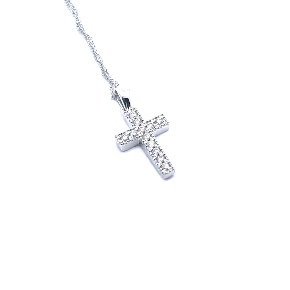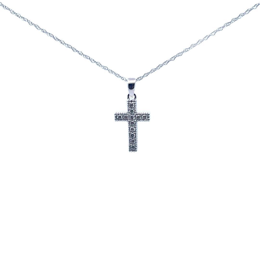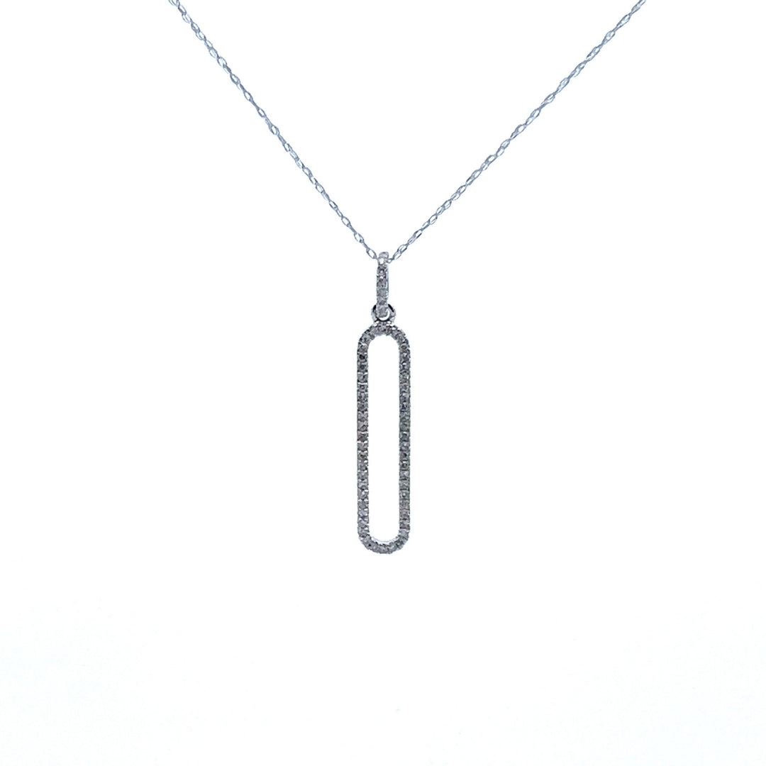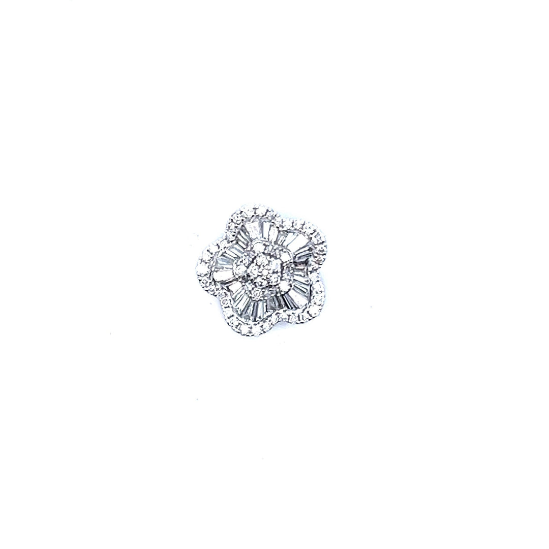 14K White Gold Round and Baguette Cut Diamond Pendant