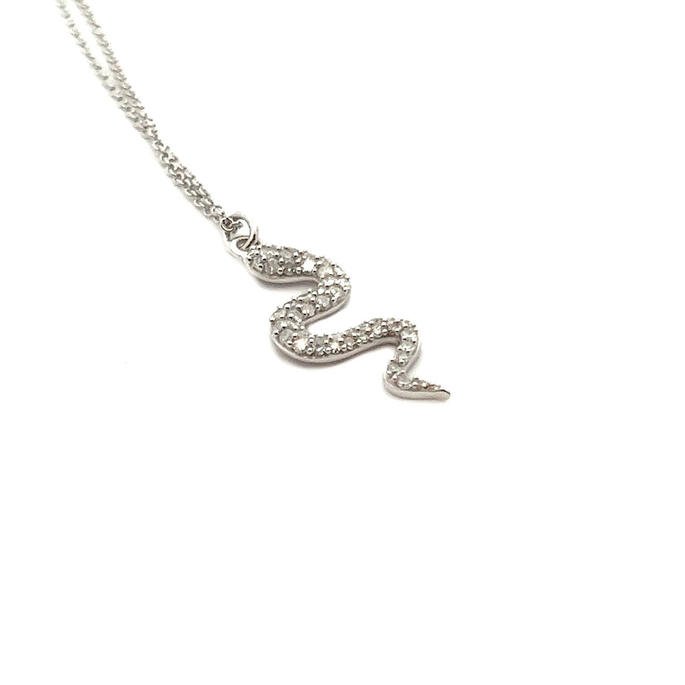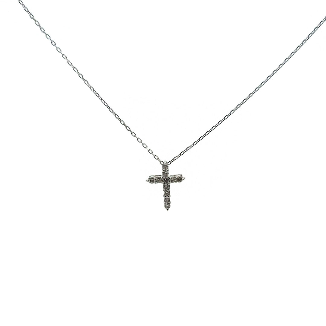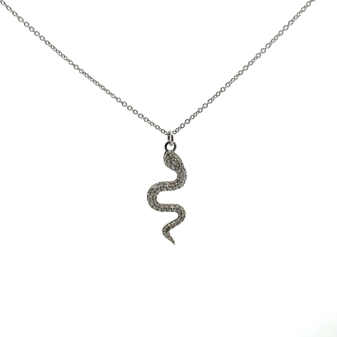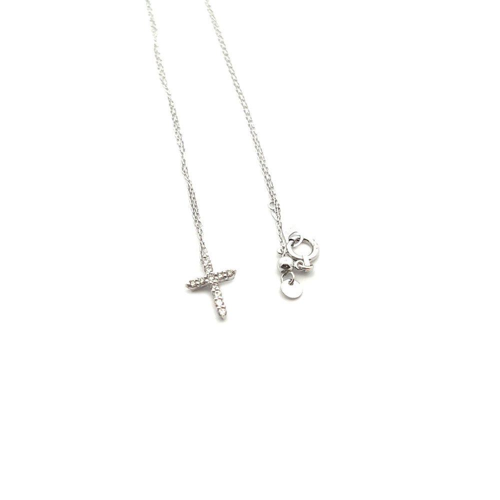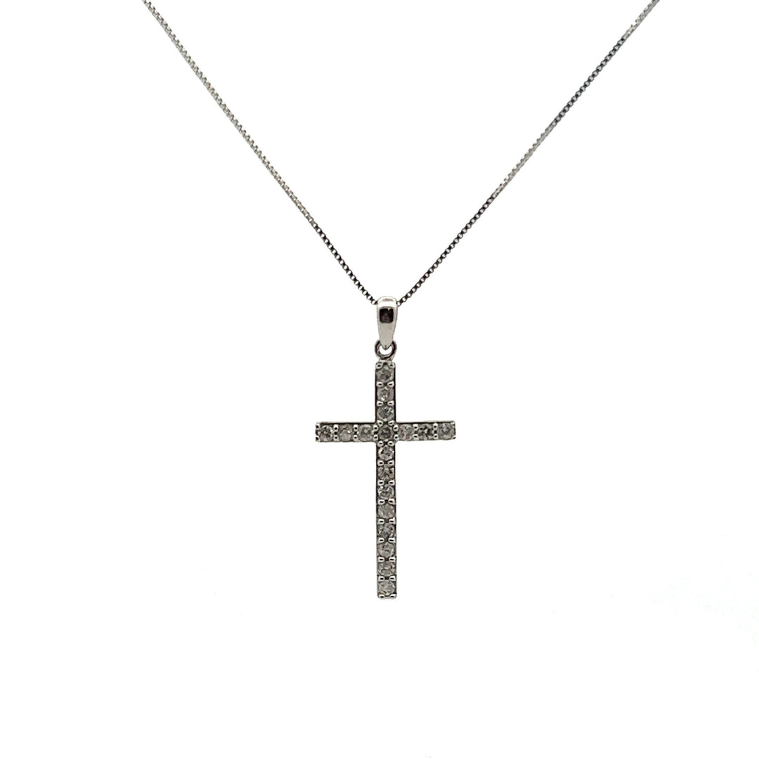 14K White Gold Round and Baguette Cut Diamond Pendant