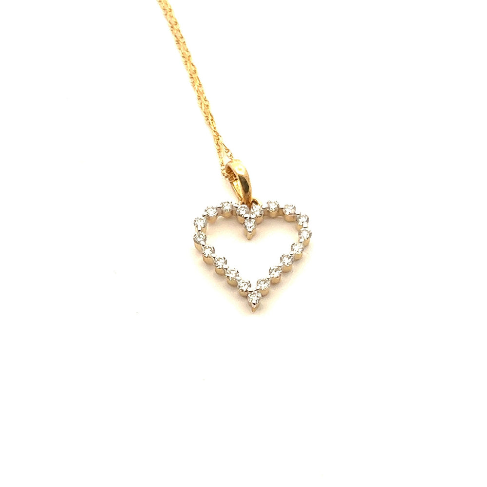 18K Yellow Gold Open Heart Dia Diamond Necklace