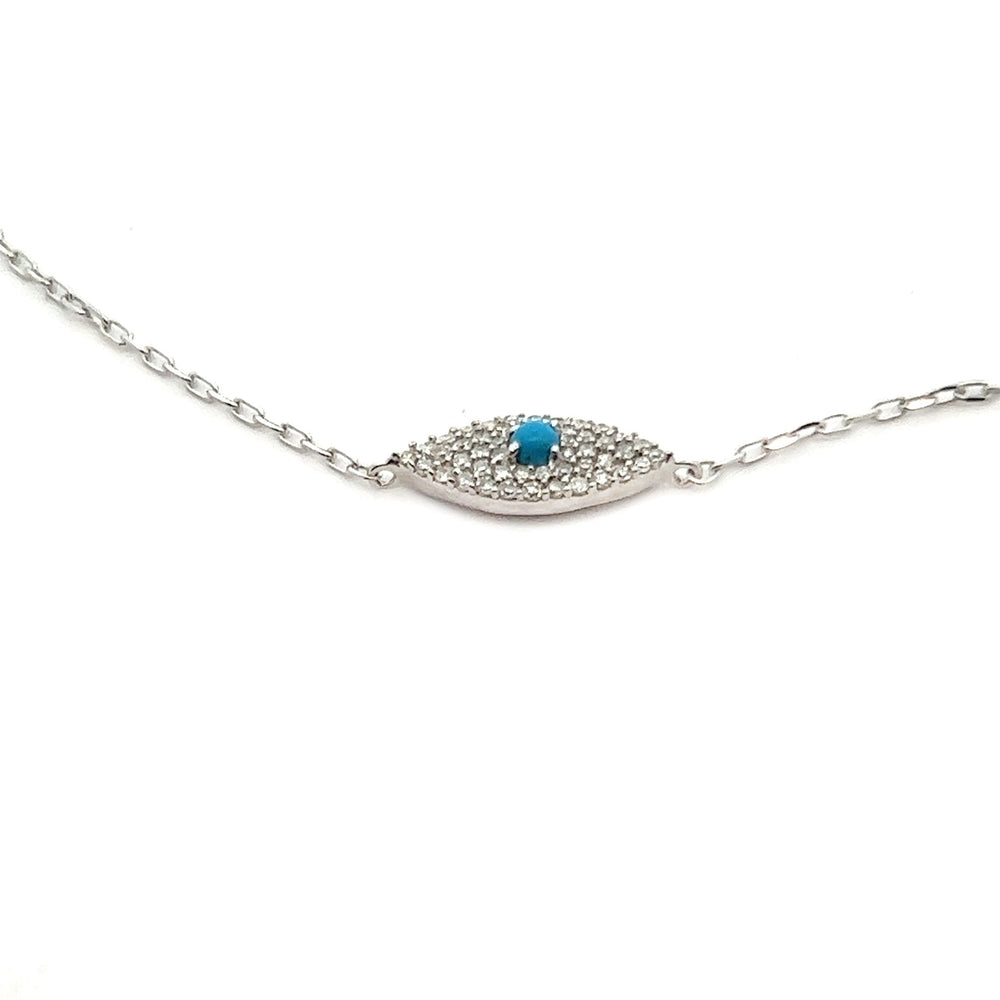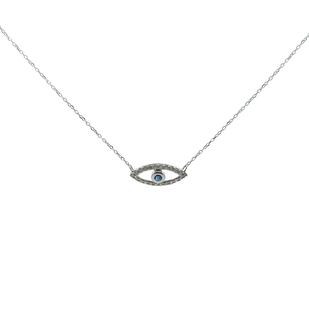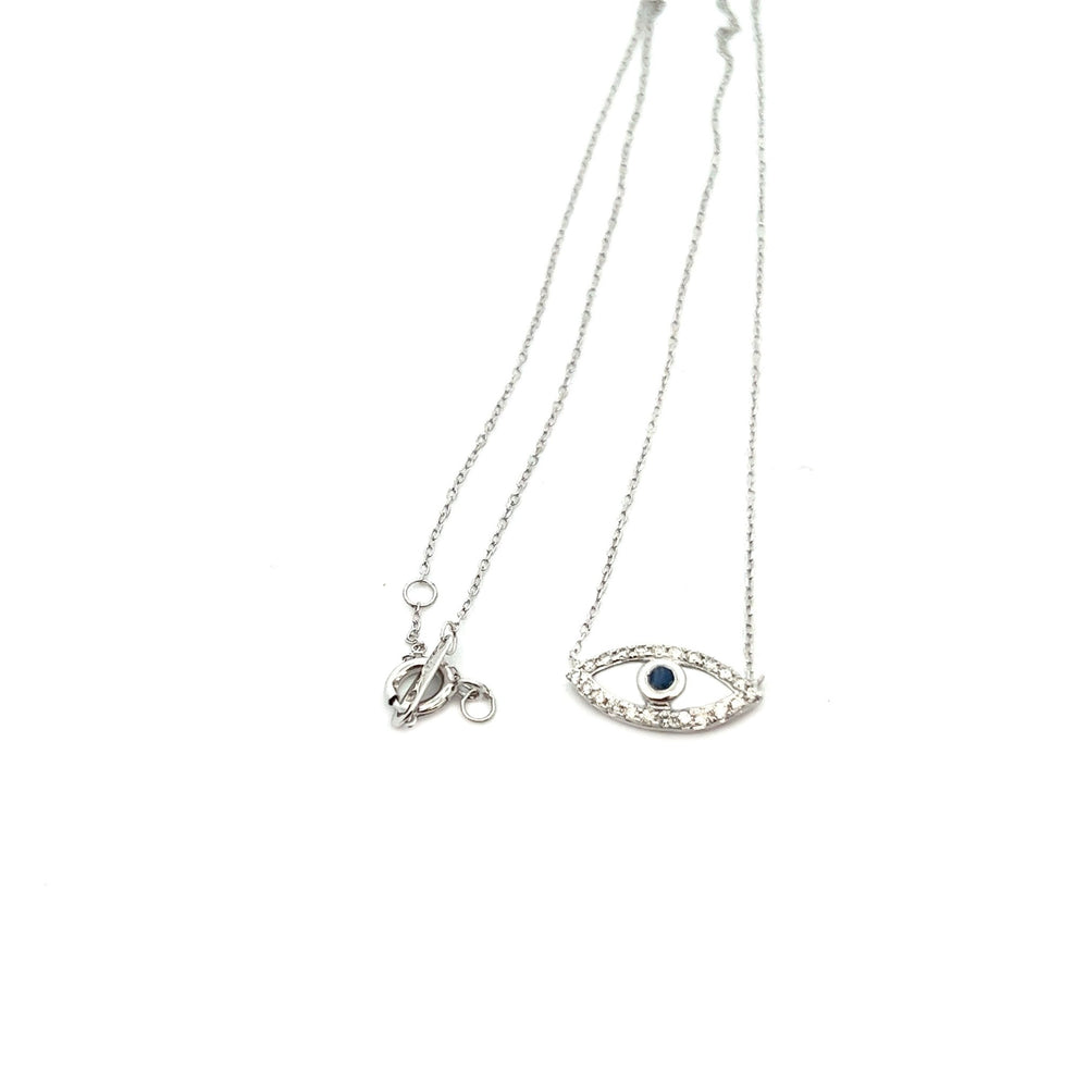 18K White Gold Blue Sapphire Evil Eye Necklace