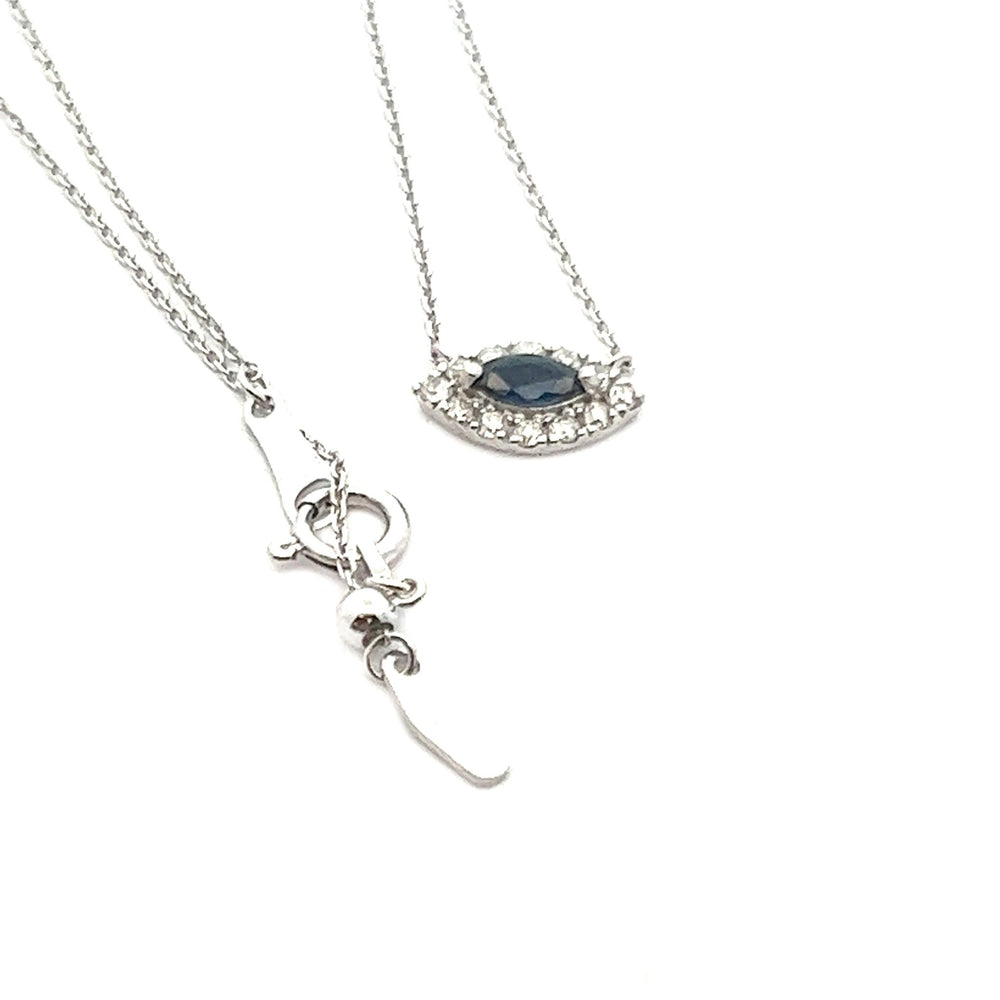 18K White Gold Sapphire and Diamond Evil Eye Necklace