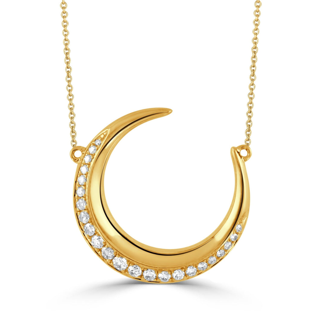 Large Diamond Horn Pendant 50mm 14 Karat Yellow Gold