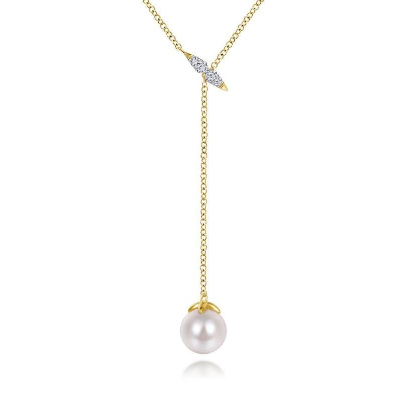 Gabriel & Co. 14k Yellow Gold Grace Pearl & Diamond Necklace