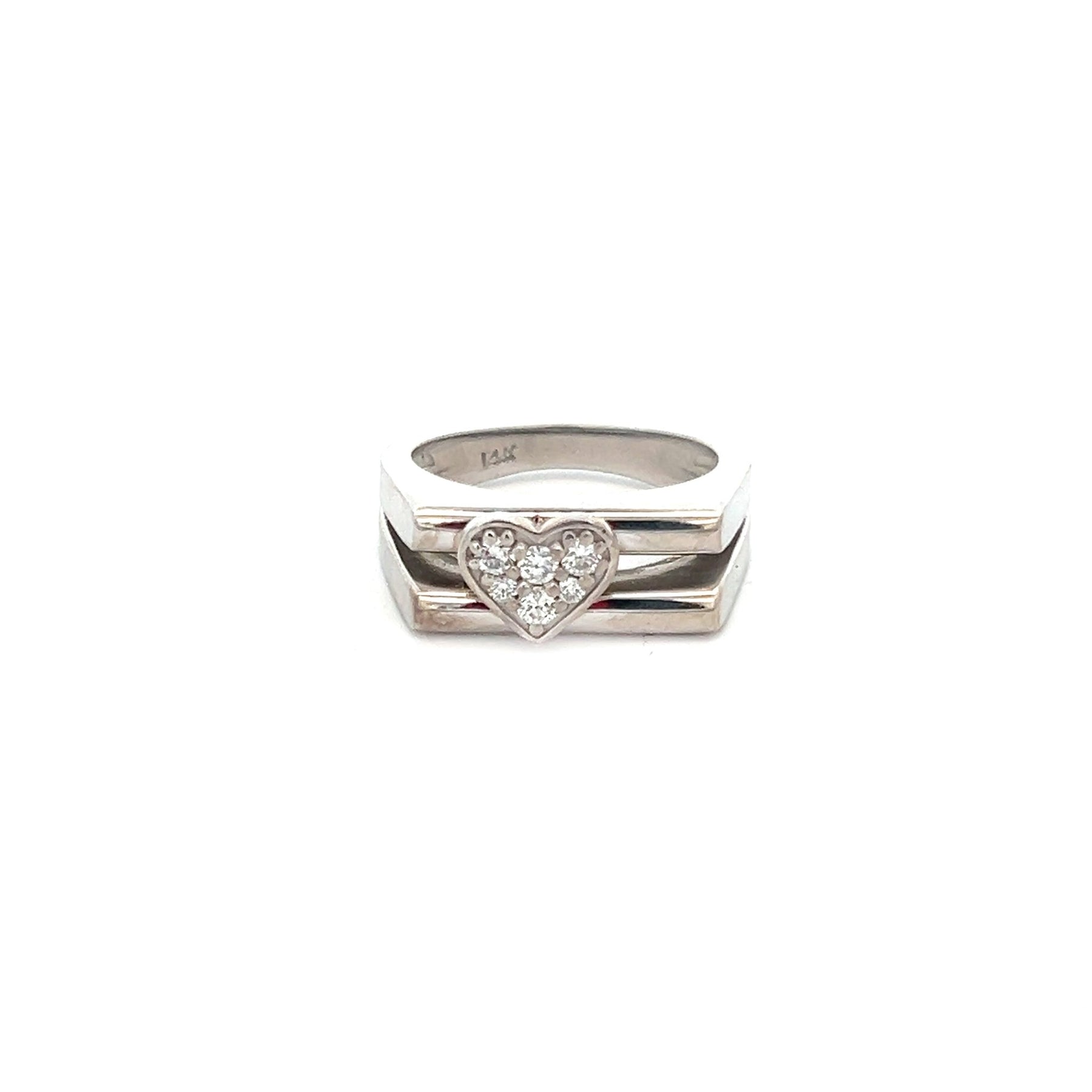 14K White Gold Split Ring with Diamond Heart - Tivoli Jewelers