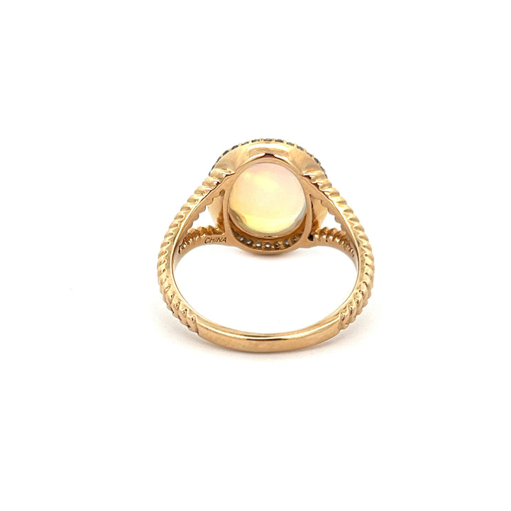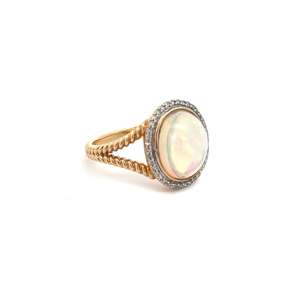 14K Yellow Gold Large Opal and Diamond Ring - Tivoli Jewelers
