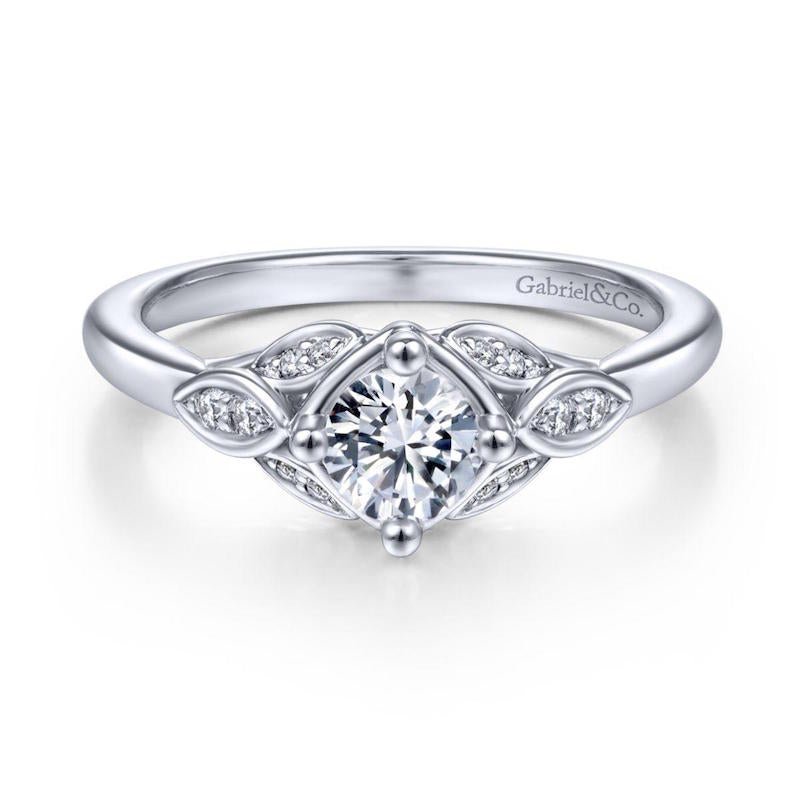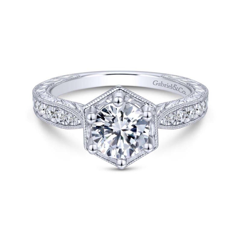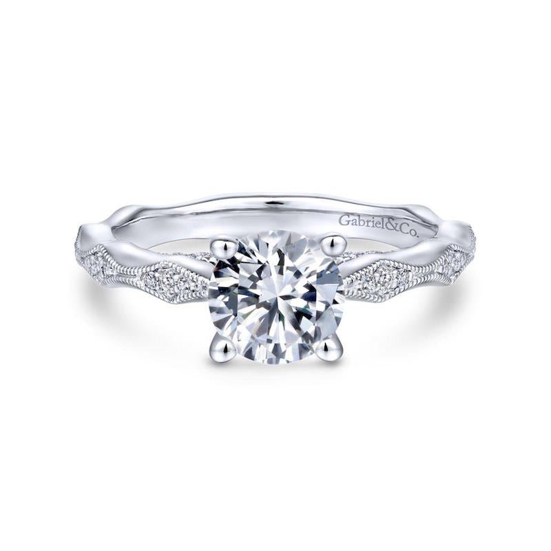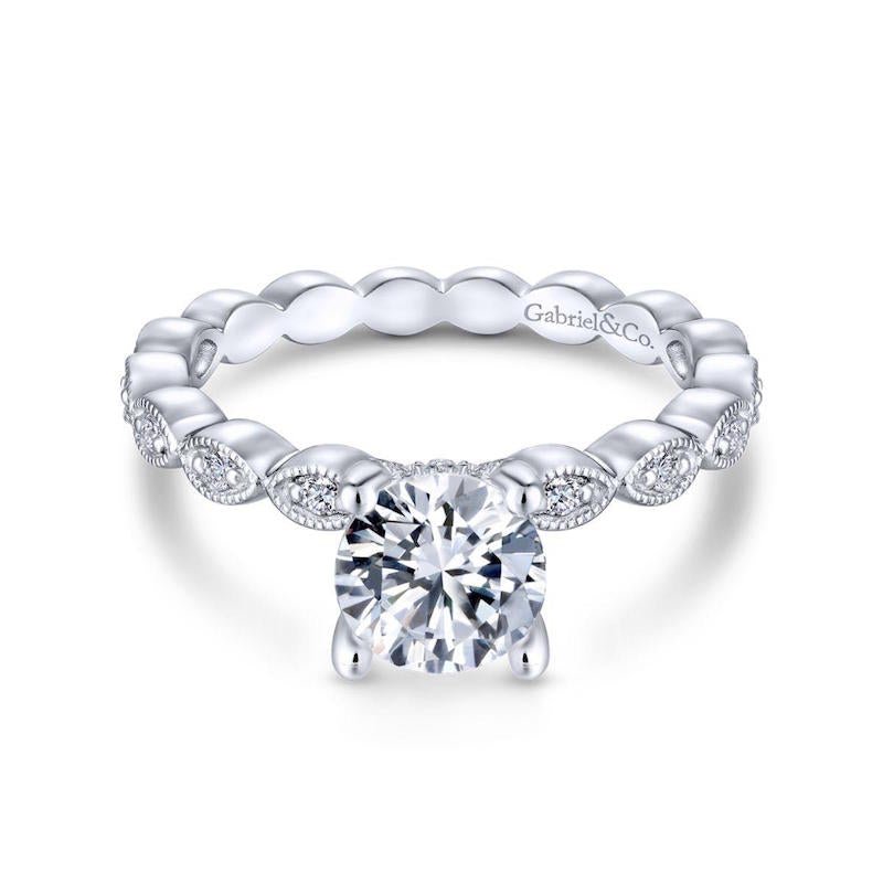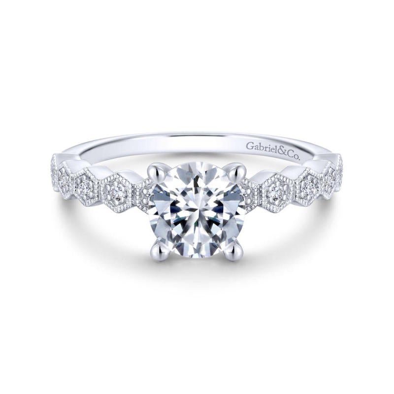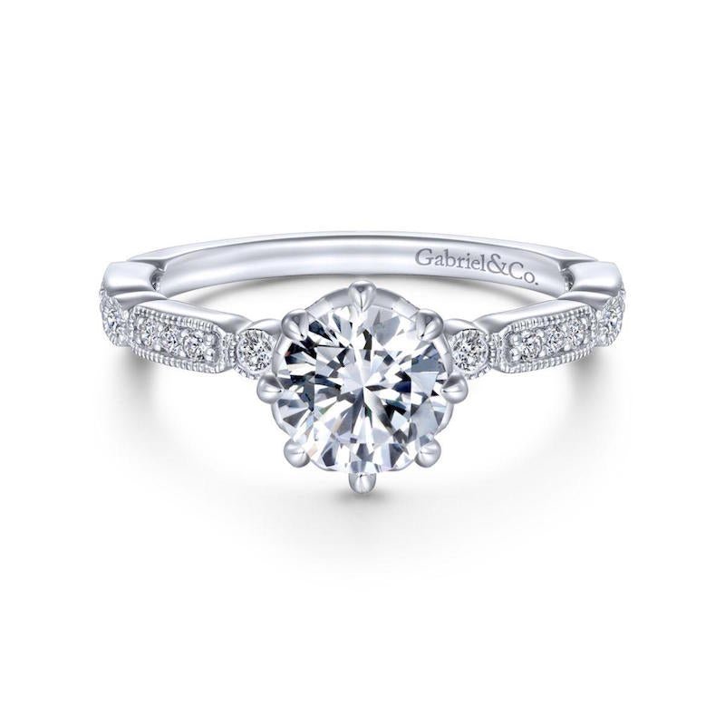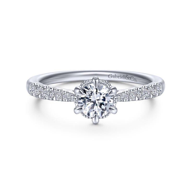 Gabriel & Co. 14k White Gold Victorian Straight Engagement Ring