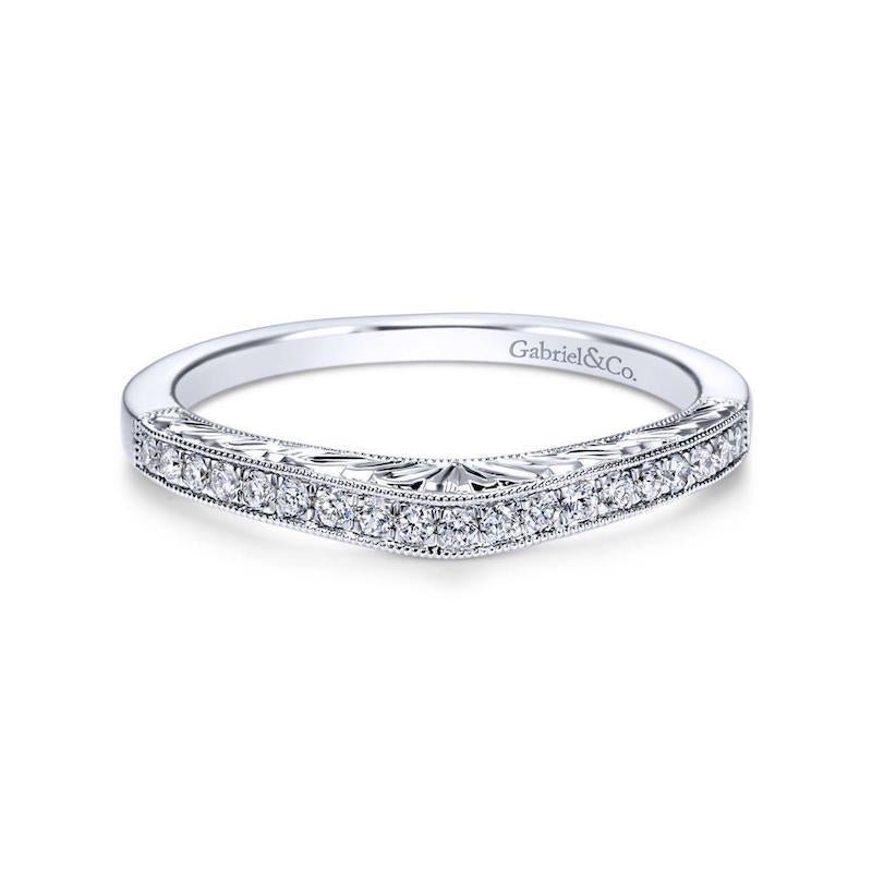 Gabriel & Co. 14k White Gold Victorian Curved Wedding Band
