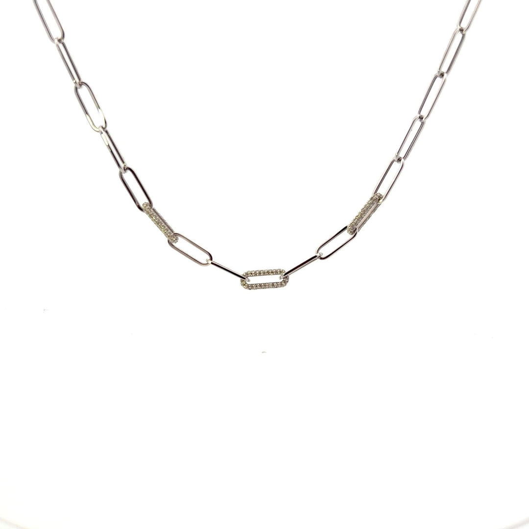 18" Necklace with three Diamond Pave Links. 1.39cts G Color Vs1 Diamonds