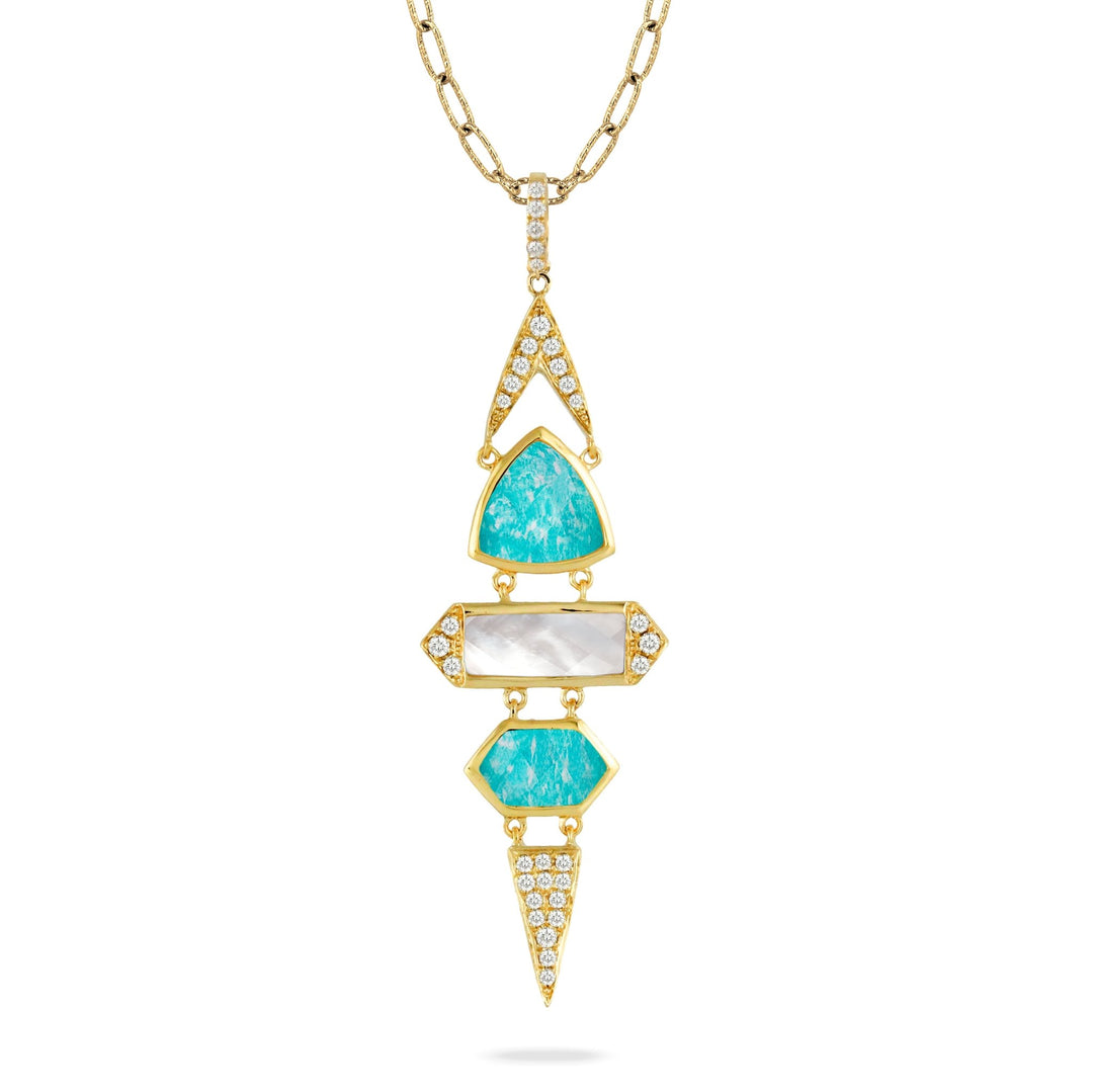 Doves by Doron Palmoma /Amazon Breeze /Amazonite and Pearl 18K Yellow Gold Pendant Necklace - Tivoli Jewelers