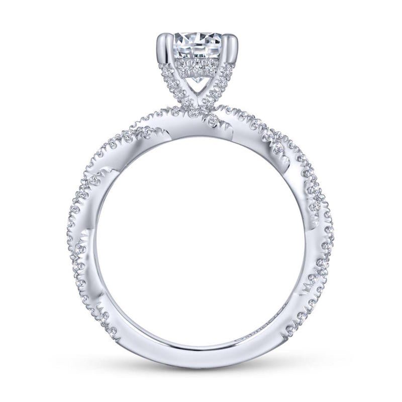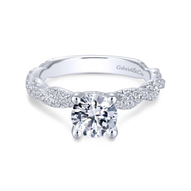 14k White Gold Twisted Engagement Ring. SETTING ONLY; center stone not included