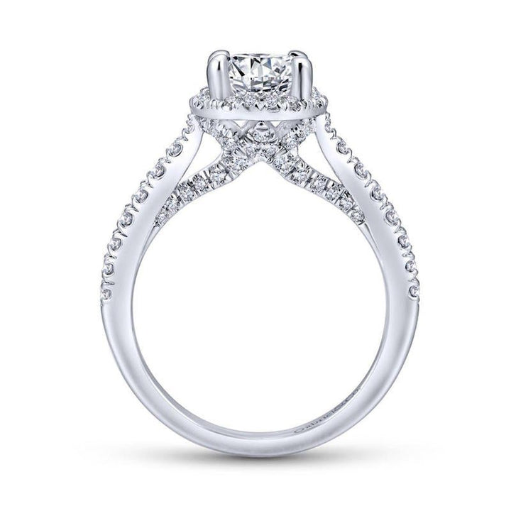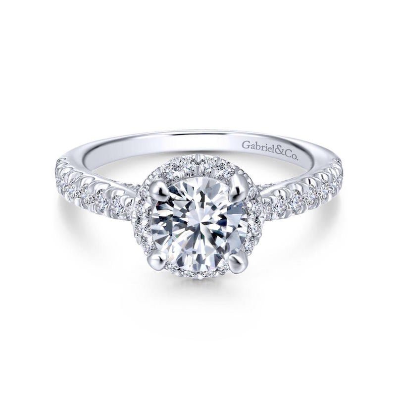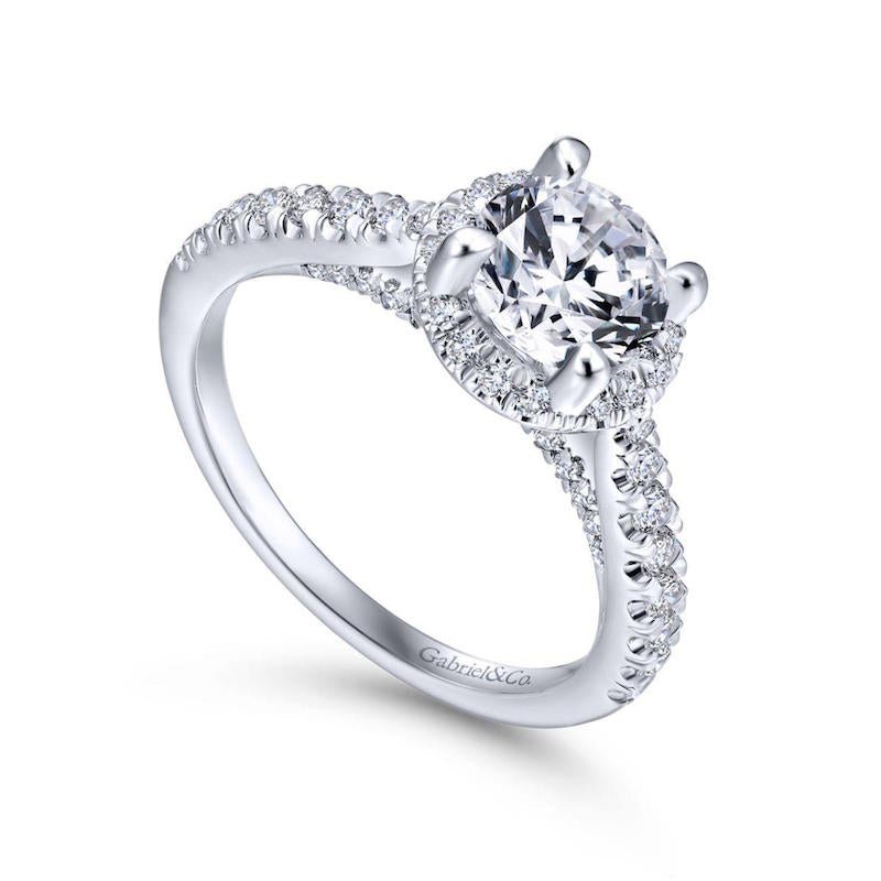 14k White Gold Halo Engagement Ring. SETTING ONLY; center stone not included