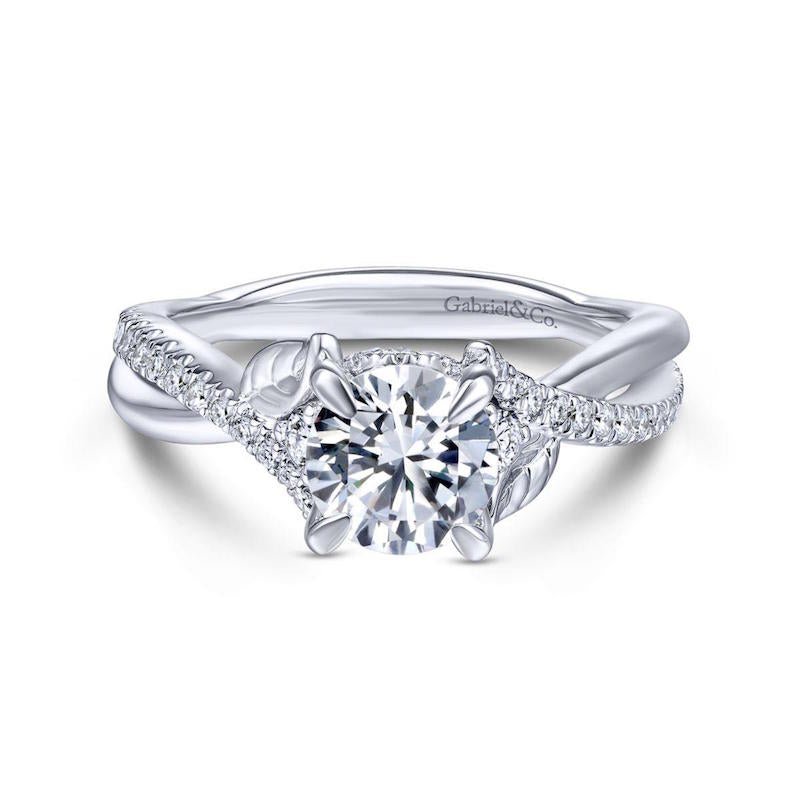 Gabriel & Co. 14k White Gold Floral Twisted Engagement Ring