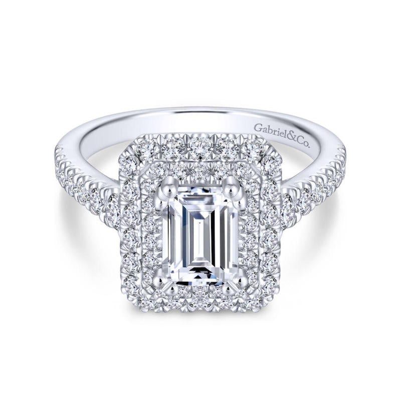 Gabriel & Co. 14k White Gold Rosette Double Halo Engagement Ring - Tivoli Jewelers
