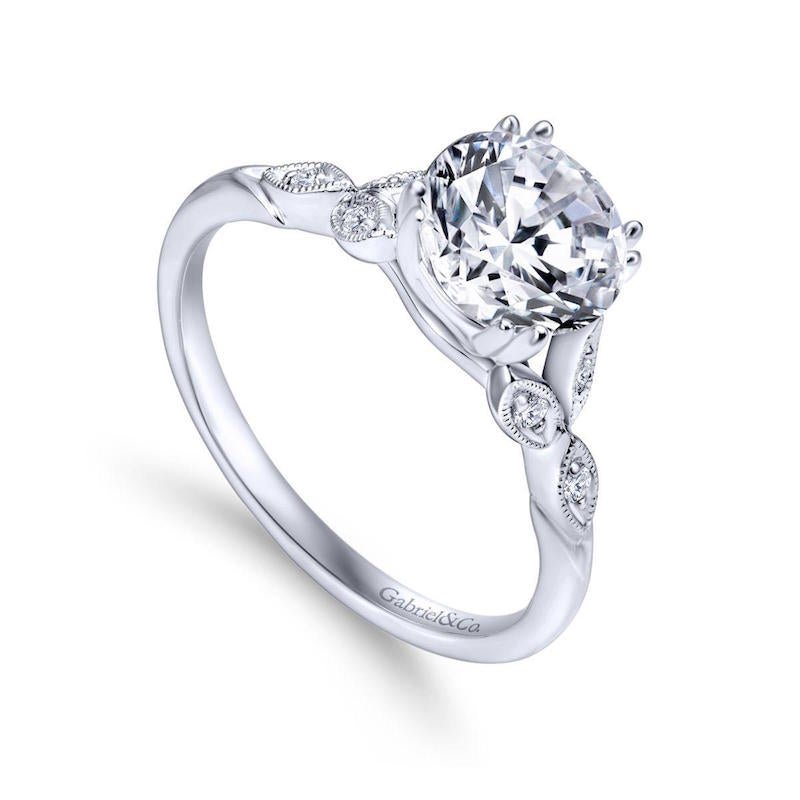 Gabriel & Co. 14k White Gold Victorian Straight Engagement Ring