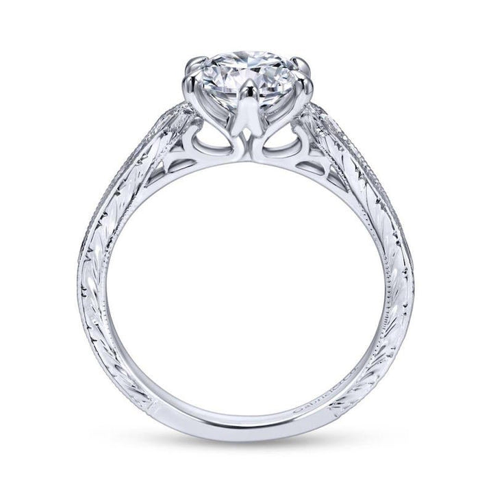 Gabriel & Co. 14k White Gold Victorian Straight Engagement Ring - Tivoli Jewelers