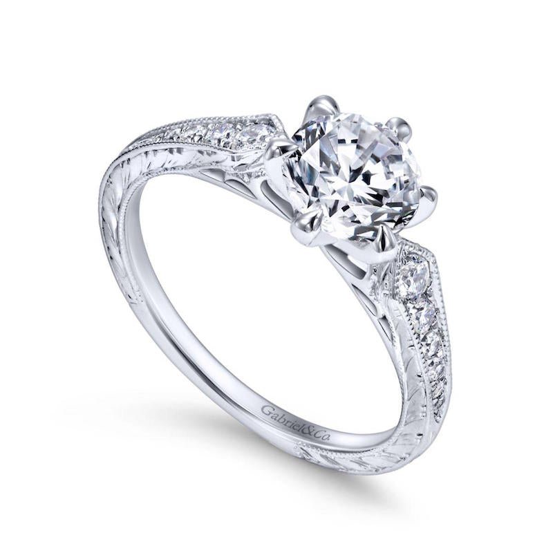 Gabriel & Co. 14k White Gold Victorian Straight Engagement Ring
