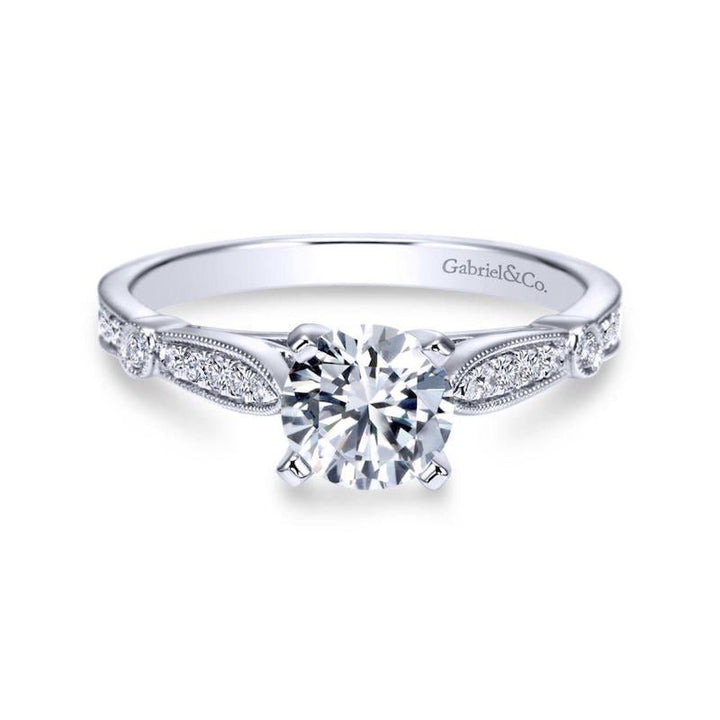 Gabriel & Co. 14k White Gold Victorian Straight Engagement Ring - Tivoli Jewelers