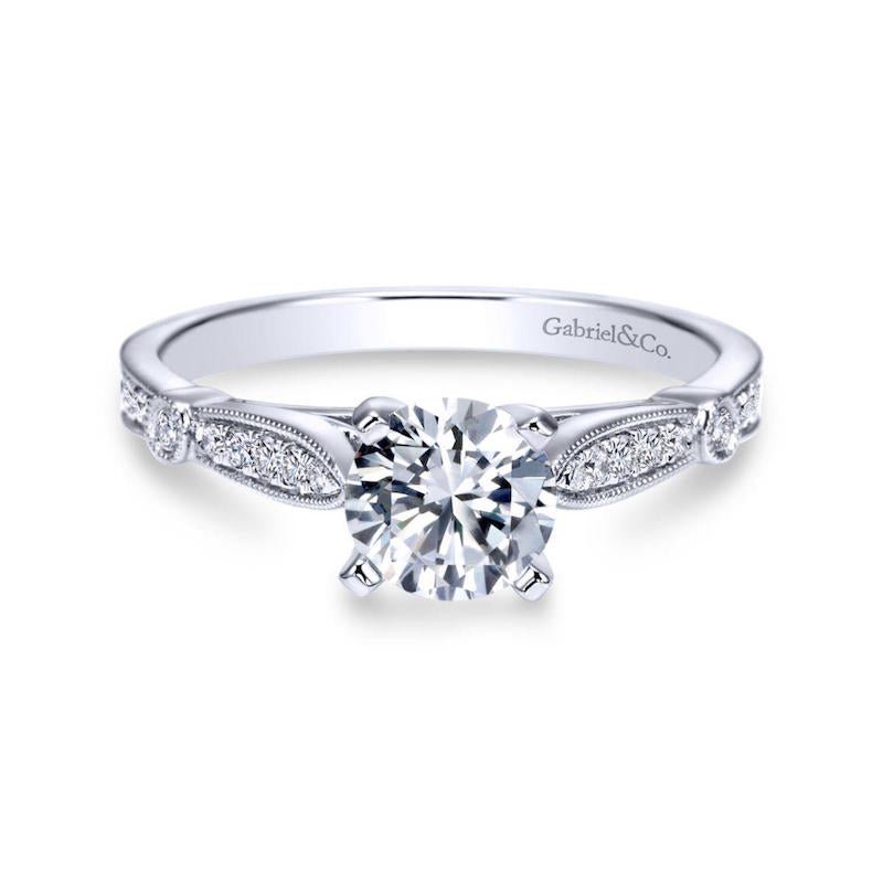 Gabriel & Co. 14k White Gold Victorian Straight Engagement Ring