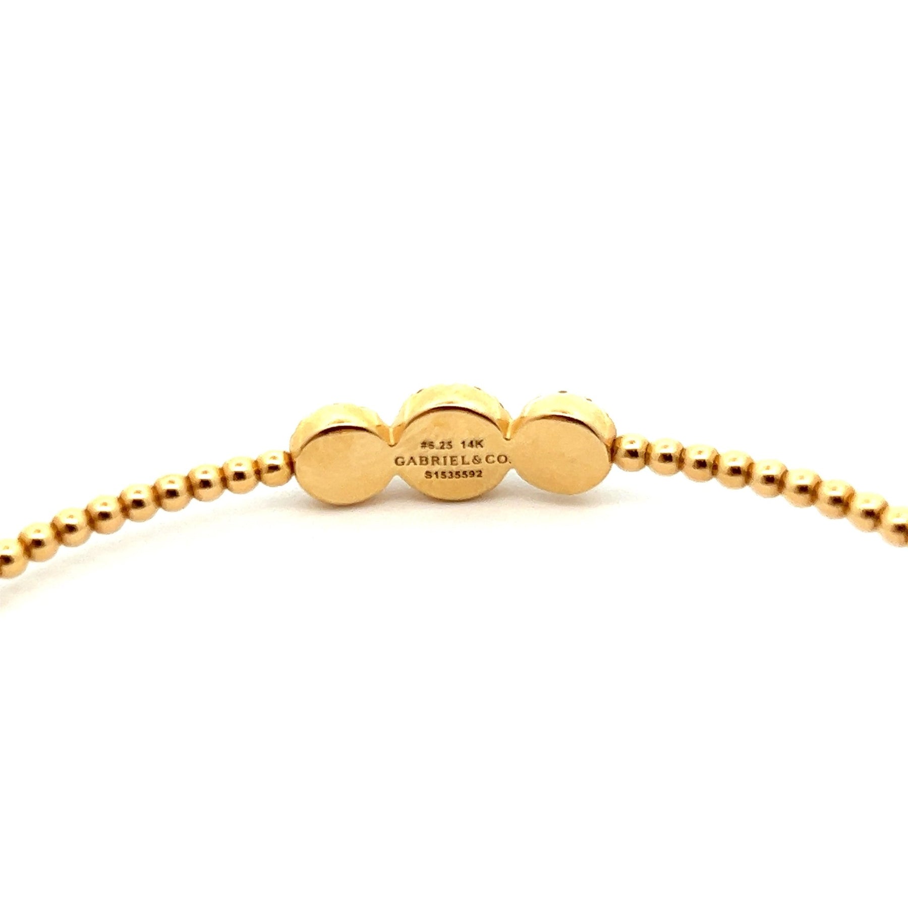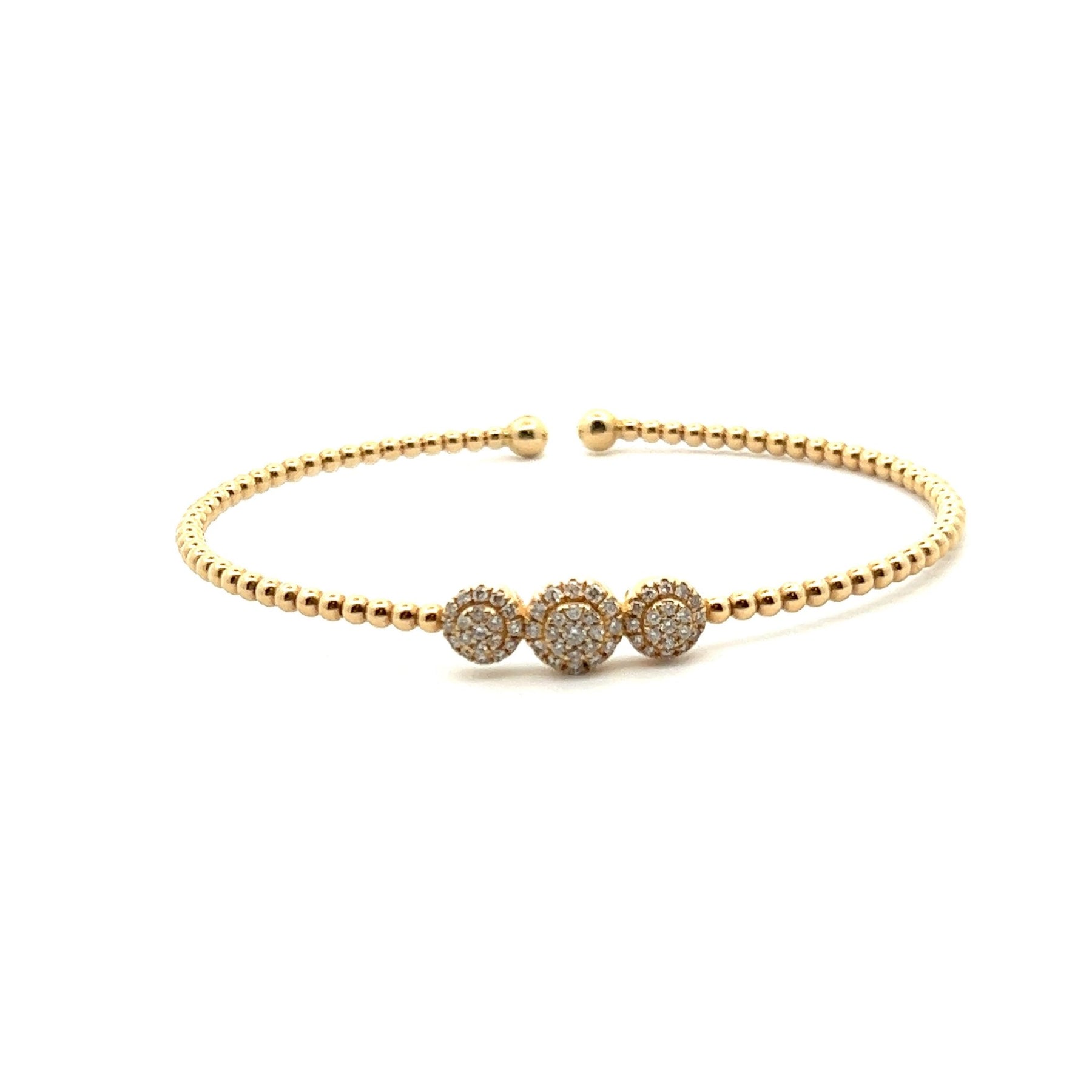 Gabriel & Co. 14k White Gold Bujukan Bangle Bracelet featuring bead detailing and stone pave diamonds.