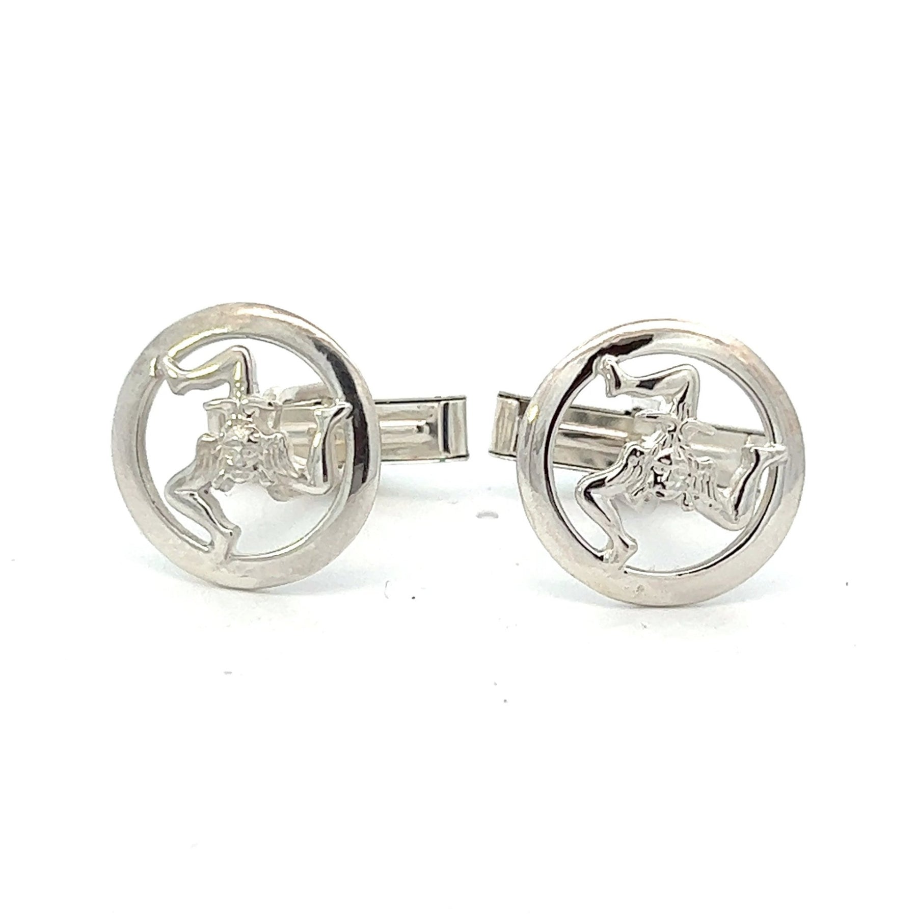 Crafted with precision and artistry, These Cuff Links showcases the iconic Trinacria symbol in Sterling Silver & 14k Gold. You'll find the Triskelion motif and two wings, while the mesmerizing Medusa head takes center stage in white gold. Measuring approximately 18mm across, it strikes the perfect balance between boldness and intricacy.